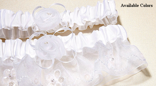 wide satin band adorned with organza rosettes. Our exquisite bridal garter