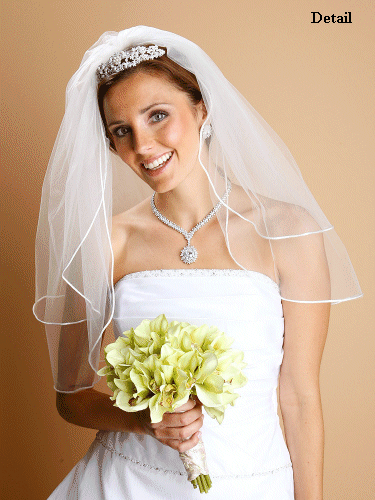 layers of tulle finished in rounded satin cord. This shoulder length veil