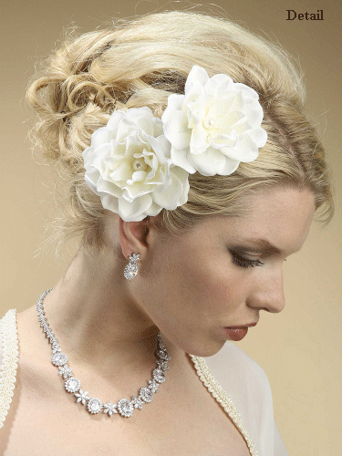 This 2 piece hair clip ensemble by Mariell features soft silk Ivory