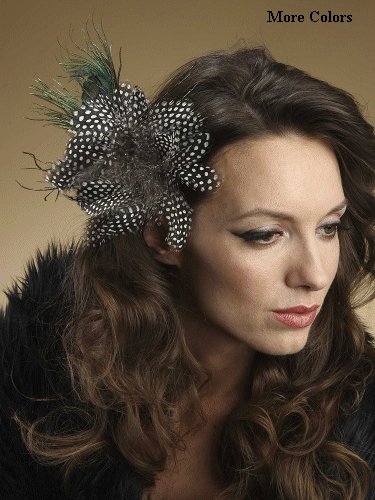 measures 3 1/2" h. This gorgeous feather headpiece is available in:
