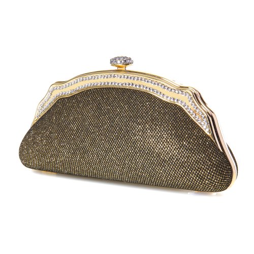 has a crystal studded gold frame and a jeweled push clasp. This glistening
