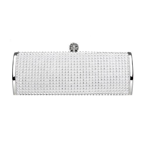 sparkling structured minaudiere has a sleek silver frame and an elegant