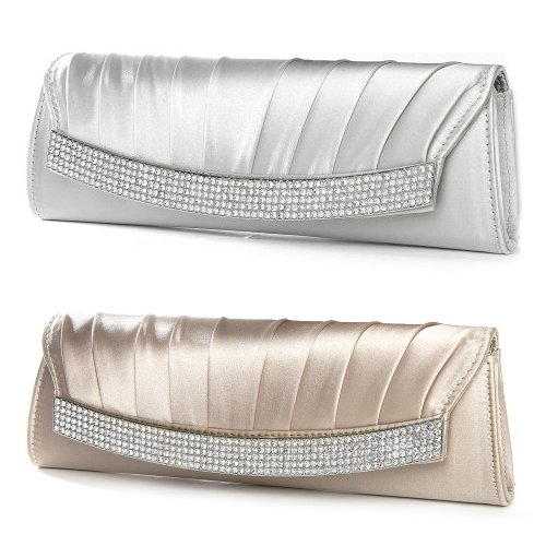 inlaid crystals. Our captivating Champagne -Taupe or Silver purse is 10