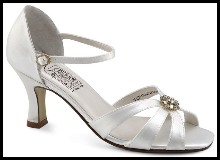 White Satin Sandal w/ Silver and Gold Rhinestone Brooch