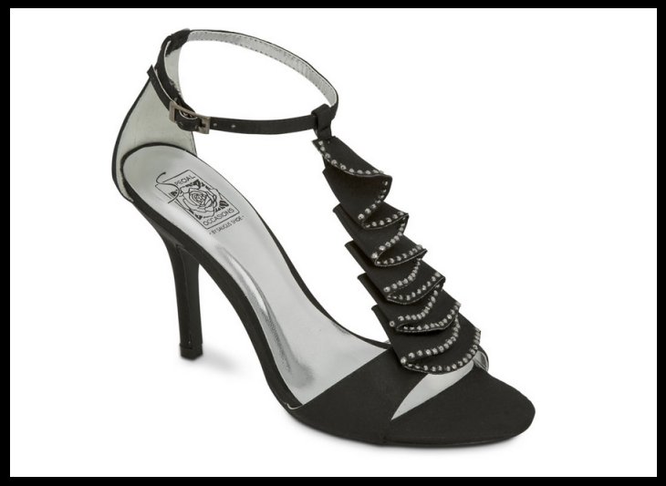 Black Satin Crystal T-Strap