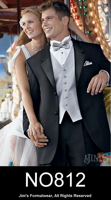 two-button tuxedo coat with satin notch lapels and satin covered buttons.